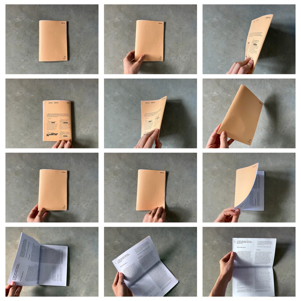 Copia advocates for copyleft, the free and collective reproduction of ideas — and proposes a critical reflection on the very act of copying: why? From whom? How? Each Copia consists of 4 parts: a record-text; a translated text; a text that reacts to the translation; and a graphic essay.